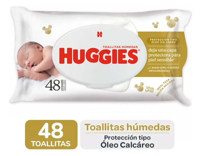 Las Toallitas Húmedas Huggies Óleo Calcáreo nutren la piel de tu bebé manteniendo su barrera natural contra resequedad e irritaciones. Su fórmula especialmente diseñada para brindar una protección tipo Oleo Calcáreo atrae y retiene la humedad natural de la piel.