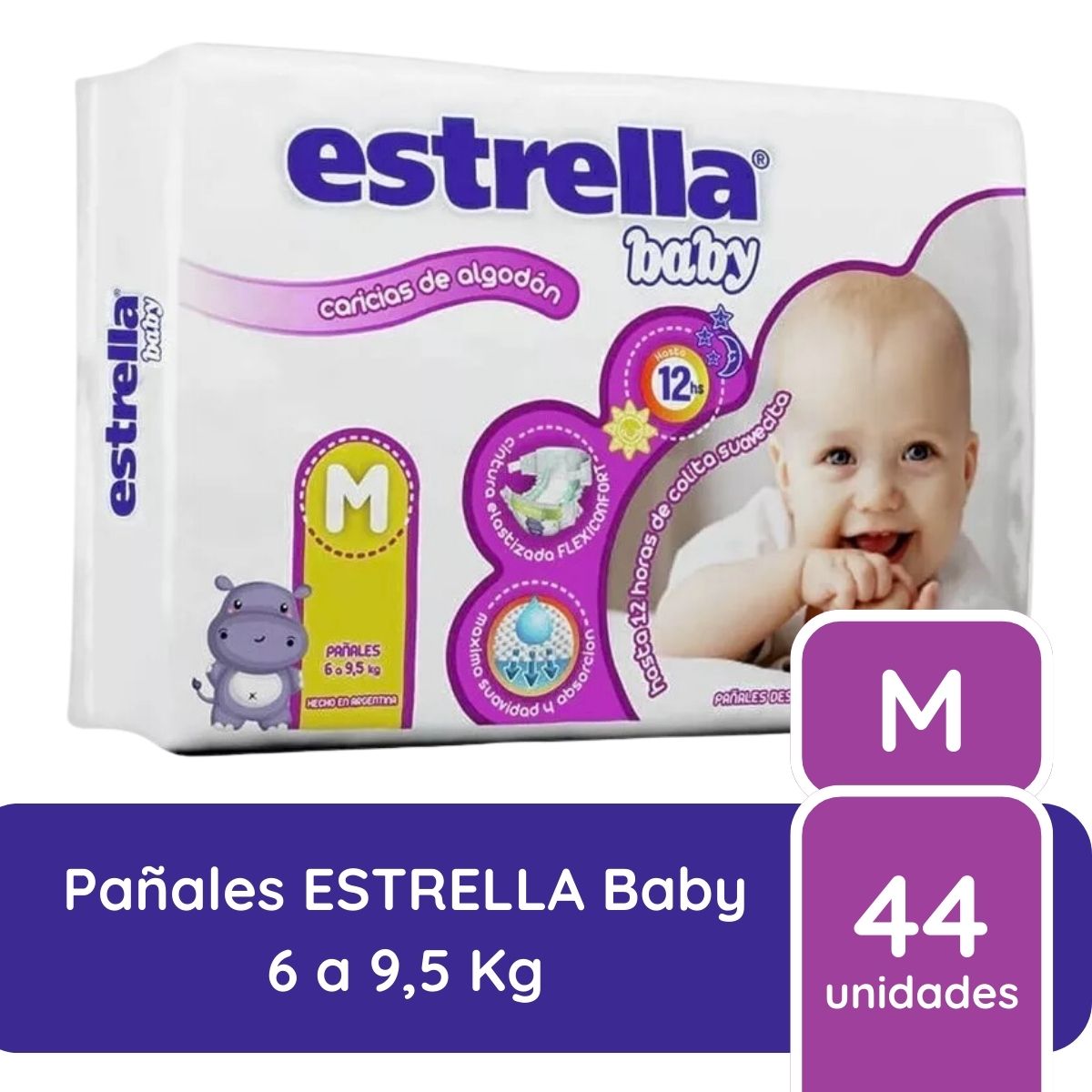 • Son tan suaves como una Caricia de algodón, los pañales Premium de Estrella Baby aseguran hasta 12 hs. de protección continua.
