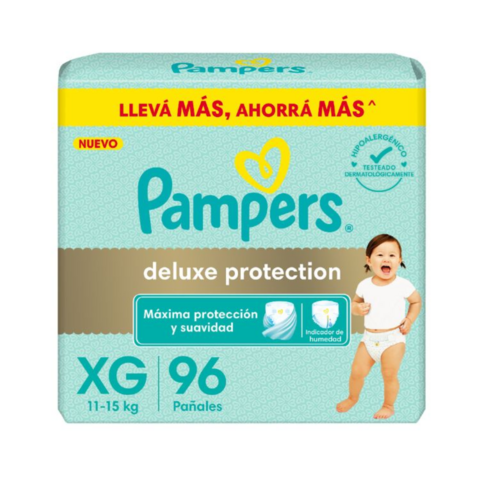 ¡El nuevo Pampers Deluxe Protection, ofrece la máxima protección y suavidad de Pampers junto con indicador de humedad. Ultra suaves con loción hipoalergénica que ayuda a proteger la delicada piel y prevenir irritaciones.