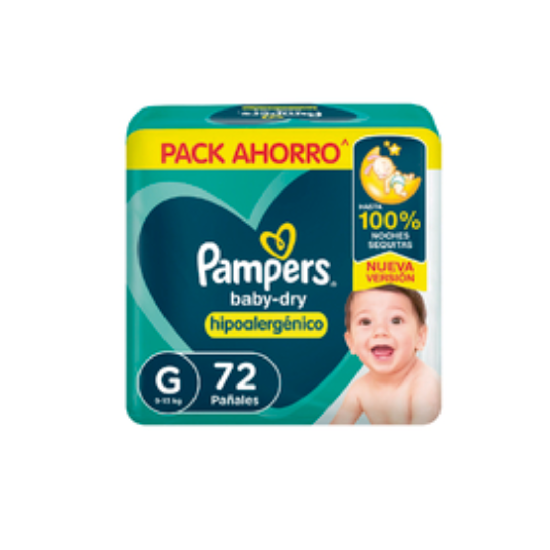 - Máxima absorción de Pampers: noches 100% sequitas